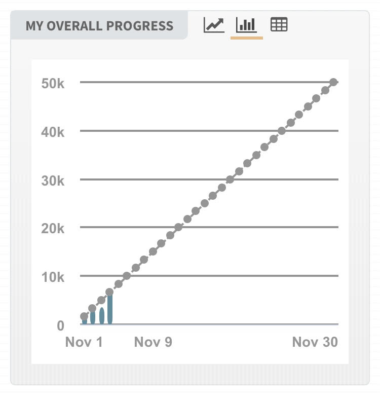So I sit down and do all the mathy things to figure out what I need to write to catch up. (Which is really a terrible mindset for NaNo across the board, but *shrug* sometimes you gotta do it.)