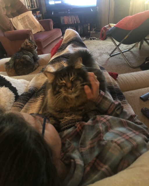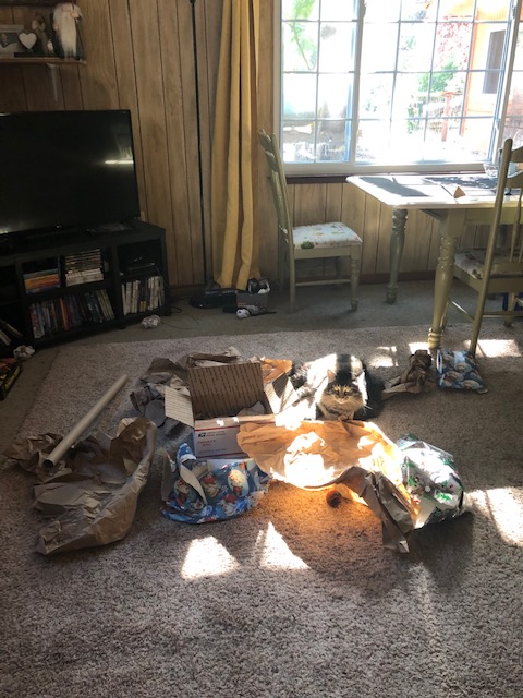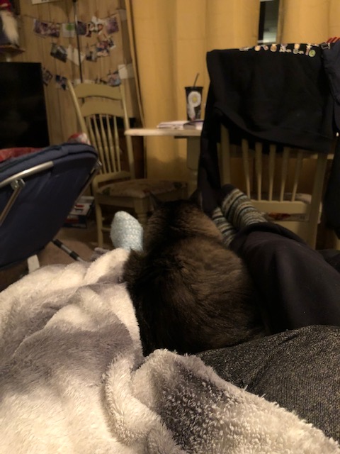 You had changed in good ways. You were more social and your curiosity had increased even more. You laid near or on us more often. Fuzzy blankets were your jam. You didn’t lay on my pillow or touch my face near as much as you used—though, you did that plenty to Mom. But your kneading was still sloppy and your purring still so loud. And your love when you were happy was intense. Also, you still loved paper balls and the sound of paper crinkling.
