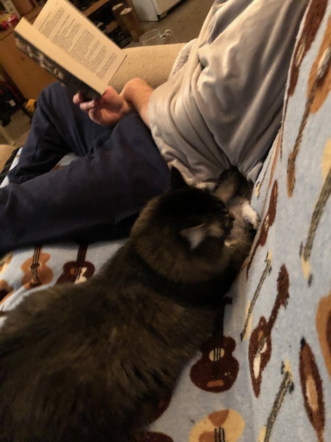 You got into the habit of hanging out with Ant when he started working from home. At nighttime, when Ant was reading, you’d settle on the footrest of the reclined couch. (You taught Moochy and Alphonse this. Good job, buddy!)