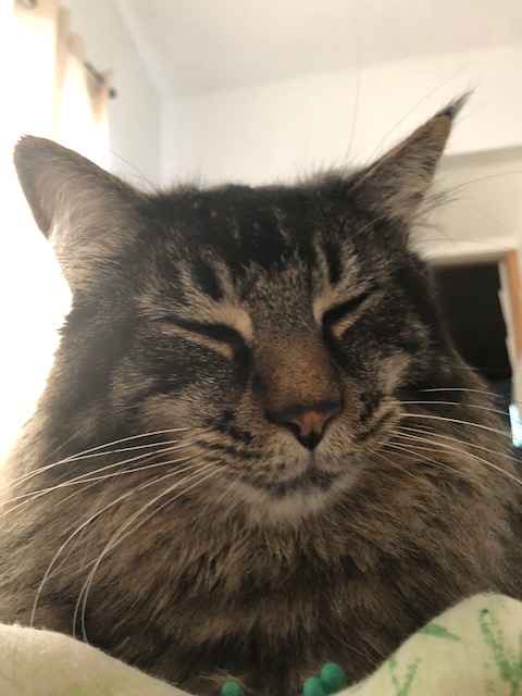 You would start meowing at Early o’clock A.M. to announce your hunger. On the weekends you let us sleep in a bit, but if we made eye contact with you, you’d start purring and lope up the bed to our heads and purr and knead until we were up. Sloppy and loud ❤