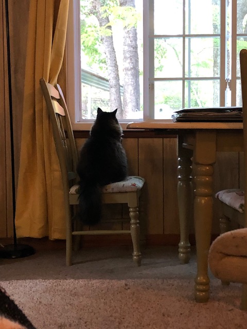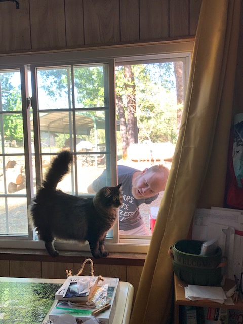 One Sunday morning, in the in-between of living in Rocklin and moving back to Meadow Vista, I asked Ant if our friends would consider letting us add our third cat to the place. Way back when I was nannying, when Ant and I were first married, I saw an Animal Planet show about introducing cats to each other—through a glass door so they can see each other. Ant jumped at the idea. We each asked them at church that same morning and . . .