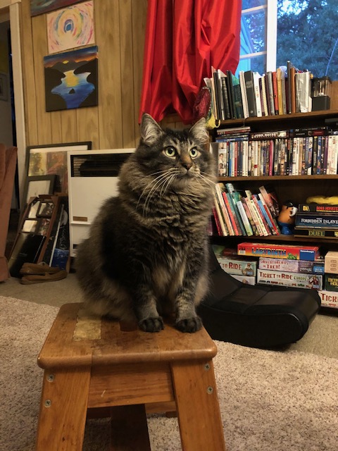 Every time we visited Mom and Dad, you always acted like you remembered us—meowing when we talked to you, greeting us at the door or soon after we’d walked in. Once you laid in our basket of laundry—which you and Alphonse did regularly at the first Meadow Vista house, upon us bringing warm folded laundry home from Thrifty’s.